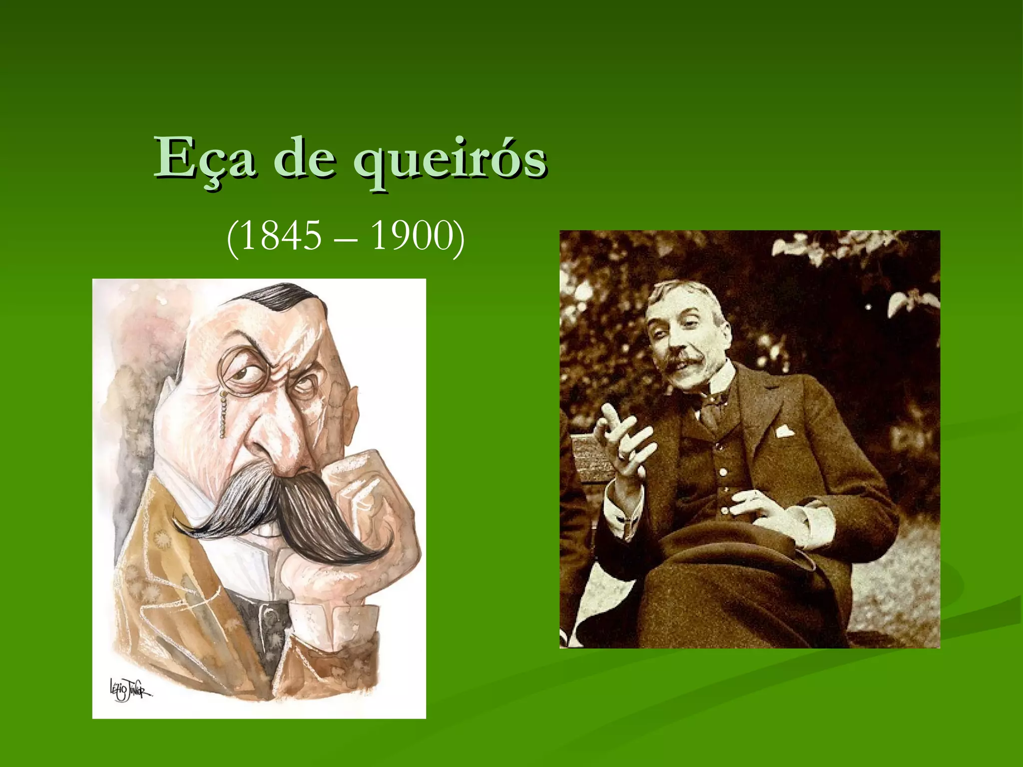 Eça de Queirós foi um importante escritor português do século XIX, conhecido por seus romances realistas como O Crime do Padre Amaro e Os Maias. Estudou direito e dividiu sua carreira literária em três fases, desde temas românticos até defender o nacionalismo nostálgico de Portugal em suas obras finais.