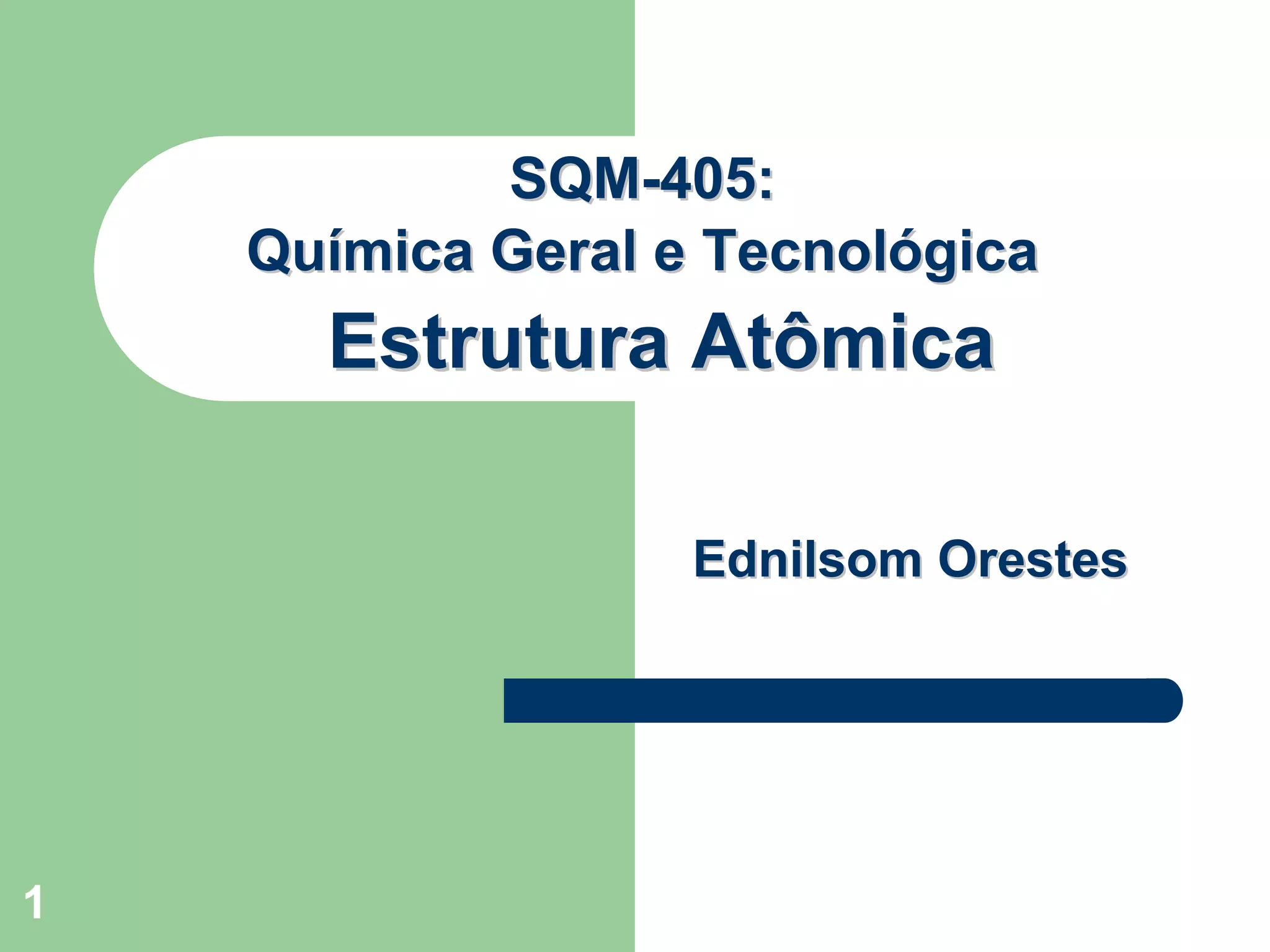 O documento apresenta os objetivos e programa de um curso de Química Geral e Tecnológica, abordando tópicos como estrutura atômica, configuração eletrônica e ligações químicas. A estrutura atômica é discutida no contexto da Química, desde a escala submicroscópica até a macroscópica. Informações sobre massa de partículas subatômicas e constantes físicas também são fornecidas.