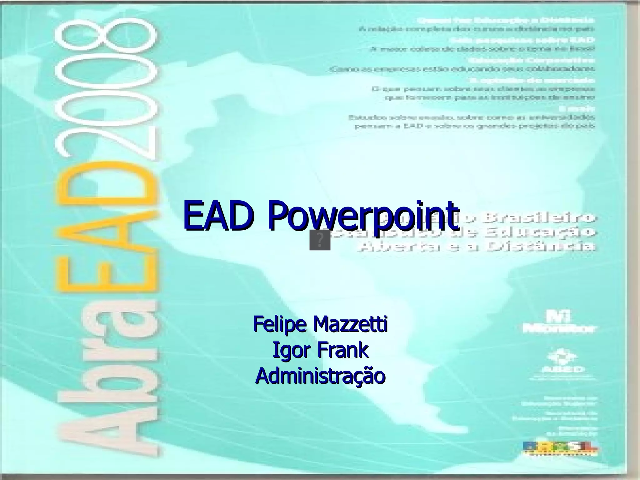 O documento discute o conceito de educação a distância (EAD), seu histórico no Brasil e no mundo, características do aluno e professor em EAD, e compara EAD com educação presencial. Apresenta números sobre o crescimento da EAD no Brasil e discute conceitos como e-learning.