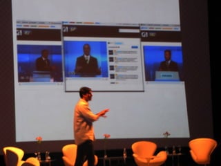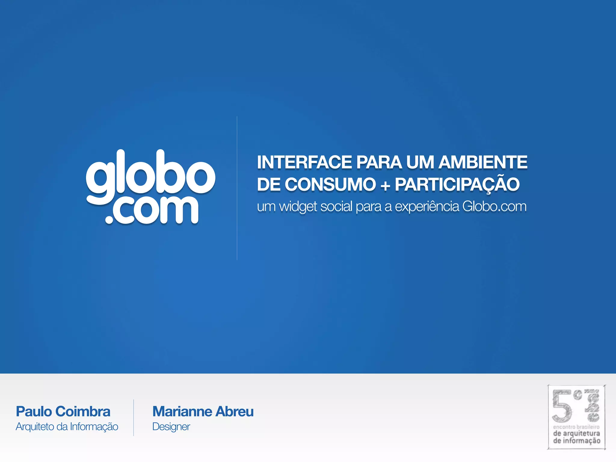 Este documento propõe um widget social para integrar a experiência do site Globo.com com redes sociais como o Twitter. Ele discute o crescimento do uso de redes sociais no Brasil, as estatísticas do Twitter no país, e como o widget poderia permitir consumo e participação contextualizados através de hashtags e filtros de amigos. Requisitos técnicos e de moderação de conteúdo são considerados.