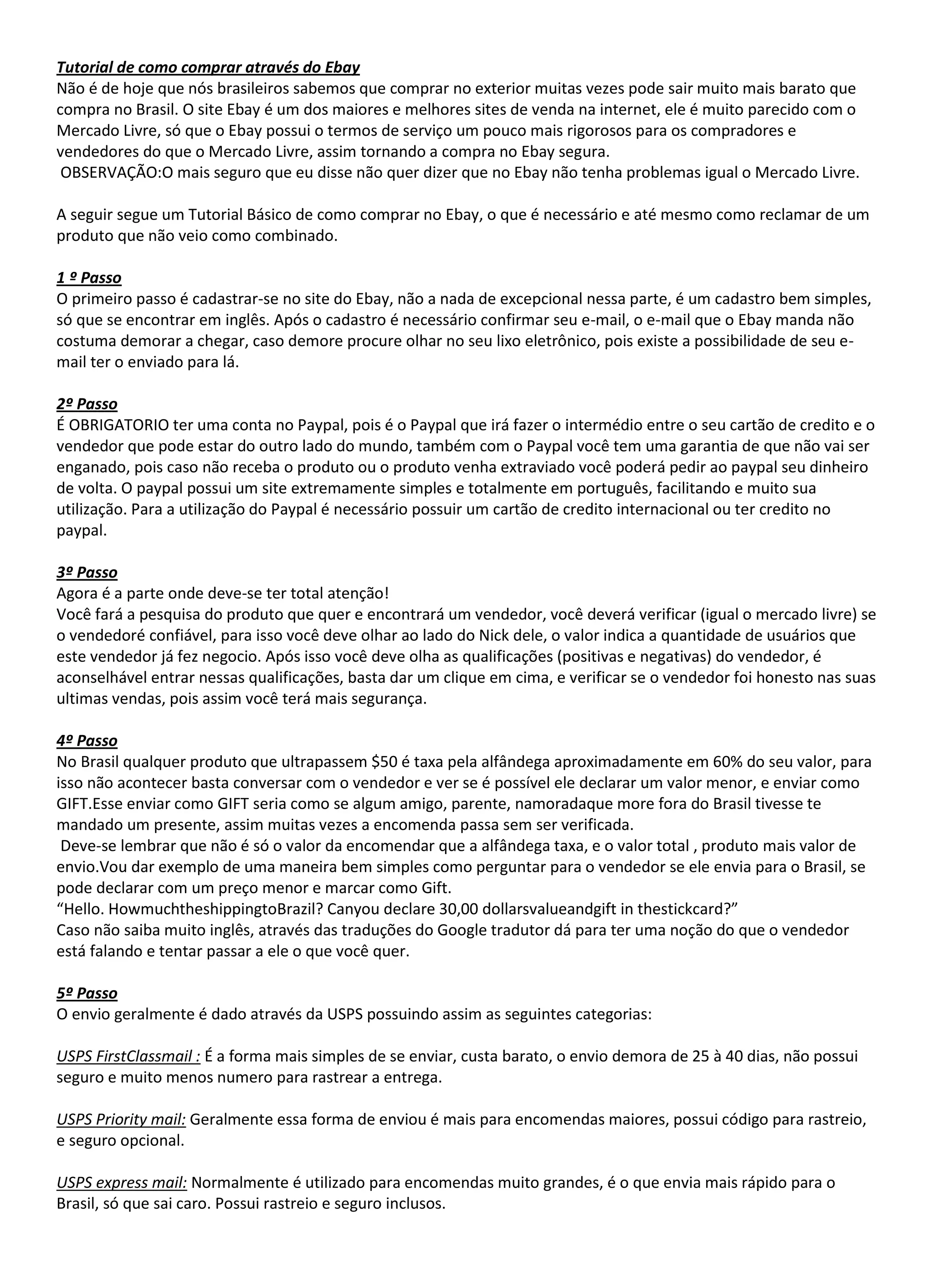 A seguir segue um Tutorial Básico de como comprar no Ebay, o que é necessário e até mesmo como reclamar de um