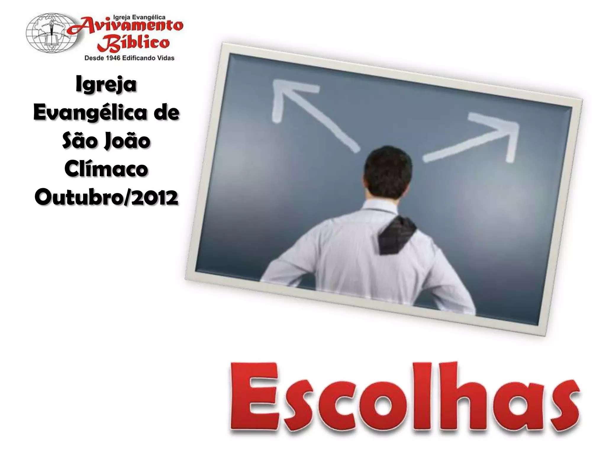 O documento discute a importância de fazer escolhas baseadas na vontade de Deus, usando Abraão como exemplo bíblico de decisão. Enfatiza que escolhas erradas podem levar a consequências negativas e que confiar em Deus é essencial. Finaliza lembrando a congregação da Escola Bíblica Dominical e citando Salmos 37:3-5 sobre confiar em Deus.