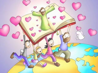 O documento discute princípios cristãos como aceitar Jesus, o papel do Espírito Santo, objetivos cristãos, perdão, amor e paz. Enfatiza a importância de viver de acordo com a vontade de Deus, amar uns aos outros e produzir frutos do Espírito como compaixão e bondade.