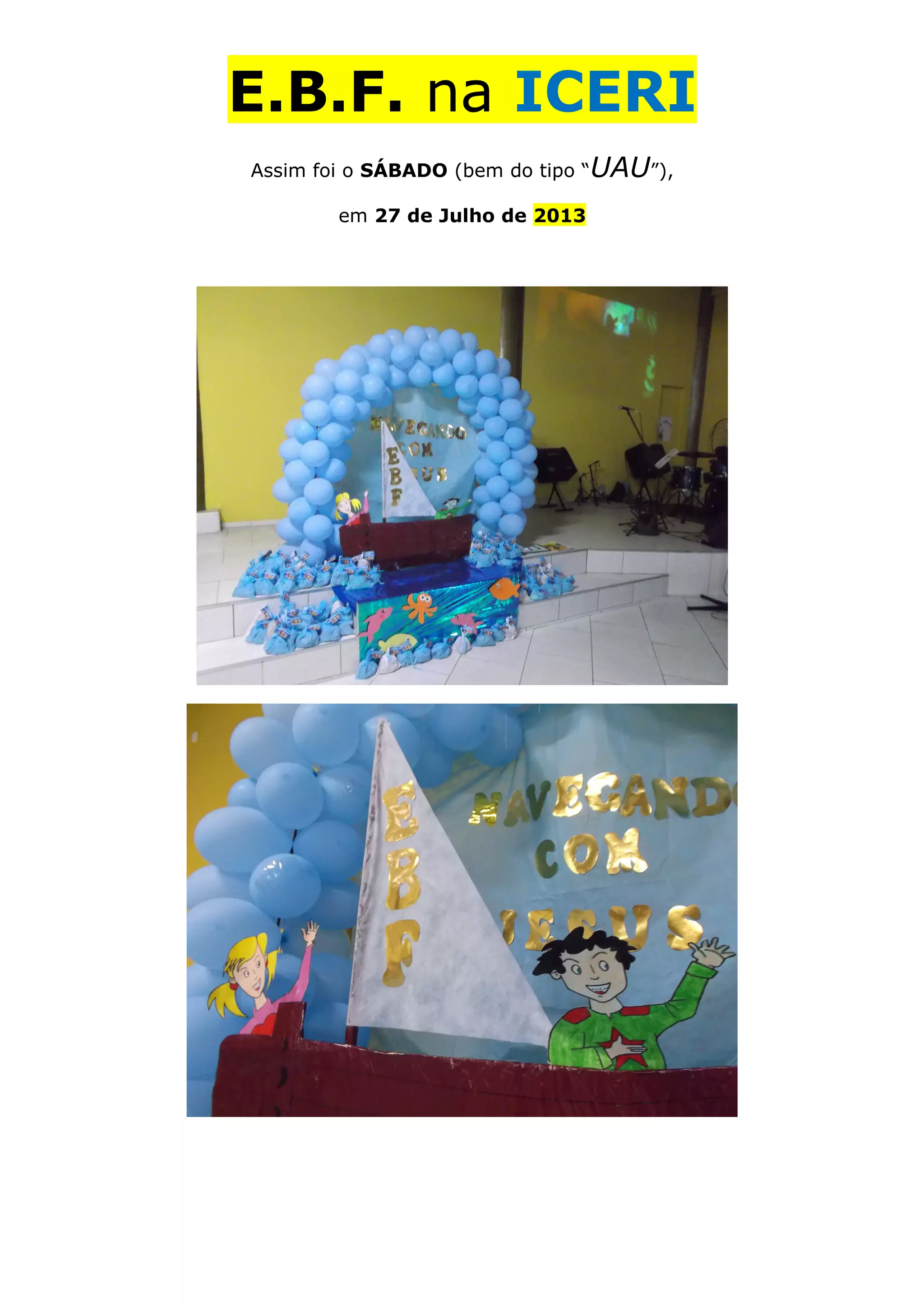 O documento descreve um evento que ocorreu em um sábado em julho de 2013. Fotos de um grupo azul foram tiradas no evento. O evento parece ter sido emocionante.
