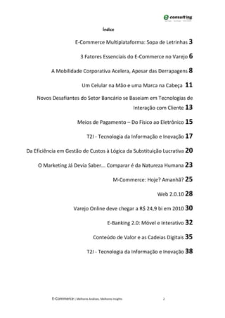 Três fatores essenciais para o sucesso do e-commerce no varejo são: 1) Inovação, como novas tecnologias para melhorar a experiência do cliente; 2) Interatividade, como ferramentas para interação com clientes em múltiplos canais; 3) Informação, como inteligência de clientes para entendê-los melhor.