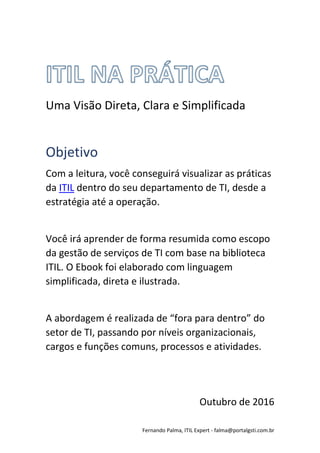 1. O documento apresenta uma visão simplificada da ITIL e como aplicá-la na prática em departamentos de TI.