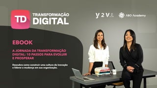 O e-book apresenta 10 passos essenciais para a criação de uma área de transformação digital bem-sucedida nas empresas, enfatizando a importância da cultura organizacional, uso estratégico de tecnologia e foco no cliente. Destaca a necessidade de formar equipes diversificadas e gerenciar expectativas, além de estar preparado para adversidades e contar com liderança transformacional. Com base em experiências práticas, o material busca guiar as organizações na jornada de adaptação ao ambiente digital em constante mudança.