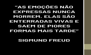 O documento discute as emoções e sentimentos humanos. Explica que emoções são programas no cérebro que geram alterações no corpo para gerar ações, como medo ou fuga. Sentimentos são a percepção consciente das emoções. Pensamentos geram sentimentos que por sua vez geram comportamentos, e mudar pensamentos pode mudar emoções e hábitos.