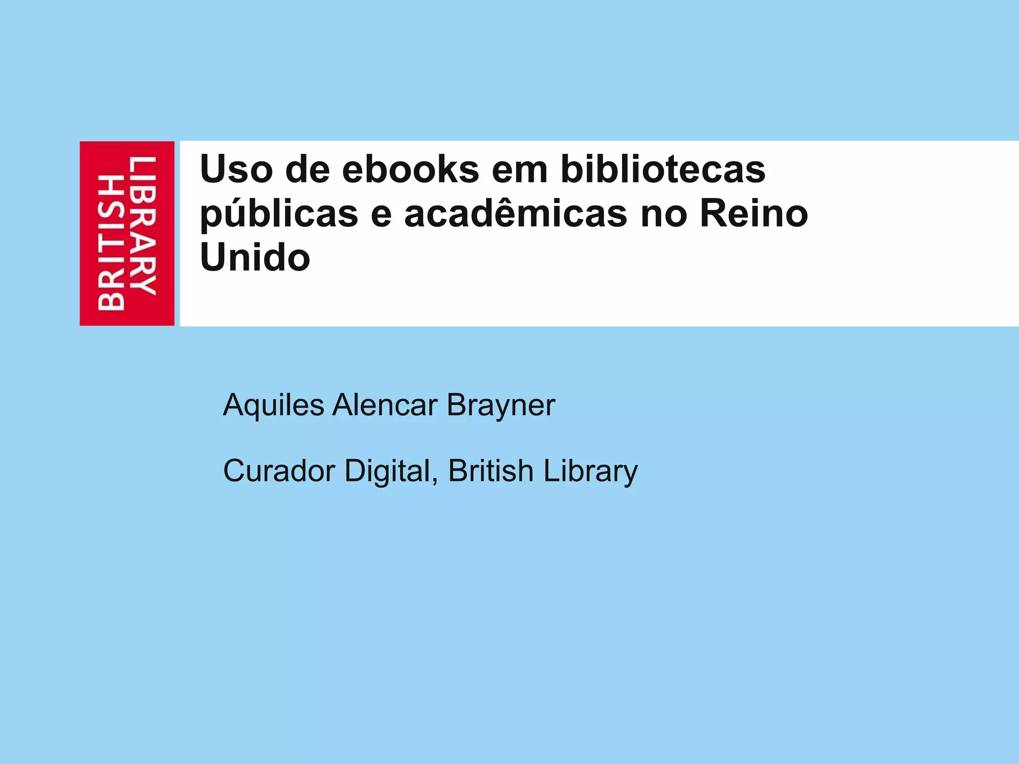 Bullet 1: O documento discute o uso de ebooks em bibliotecas públicas e acadêmicas no Reino Unido, incluindo tendências, desafios e novas abordagens.