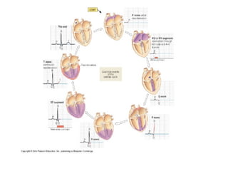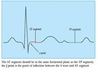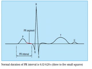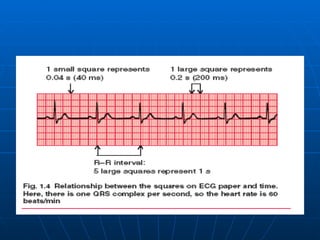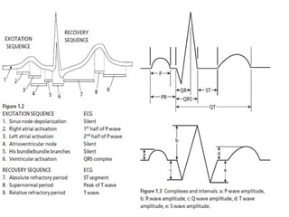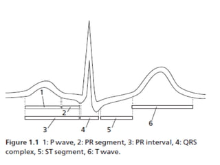 This document outlines the content of a course on electrocardiography (ECG), covering normal ECG parameters and patterns, vectorial analysis of the ECG, basic ECG interpretation, and beginning recognition of rhythms such as sinus rhythm and heart block. The course is divided into modules that cover topics including normal ECG features, abnormalities, arrhythmias, antiarrhythmic drugs, and a test with 20 ECG strips.