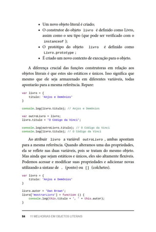 literais tornaram a manipulação de objetos melhor e o código mais