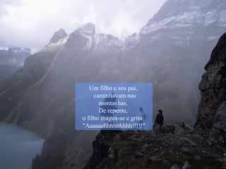 Um menino e seu pai caminhavam nas montanhas quando o menino gritou após se machucar. Eles ouviram o eco repetir seus gritos e palavras. O pai explicou que assim como o eco devolve o som, nossas vidas refletem nossas ações - se queremos mais amor e felicidade, devemos espalhá-los para os outros.