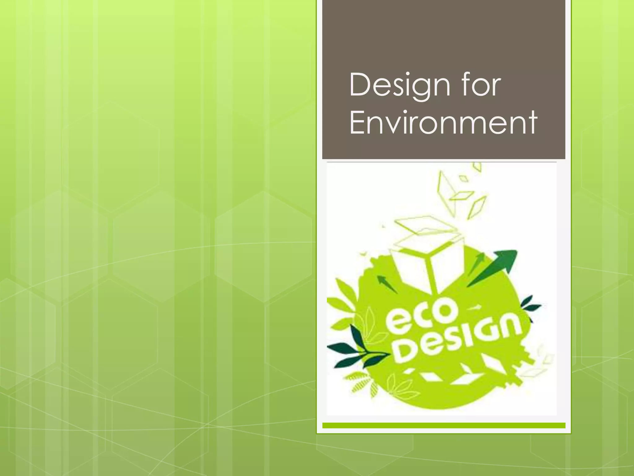 O documento discute o conceito de ecodesign, que visa projetar produtos e processos que minimizem o impacto ambiental ao longo de seu ciclo de vida, por meio da redução no uso de recursos e geração de resíduos. Alguns princípios do ecodesign incluem a escolha de materiais menos poluentes, eficiência energética, qualidade e durabilidade para gerar menos lixo. O objetivo do ecodesign é criar produtos ecoeficientes sem comprometer custos ou qualidade.