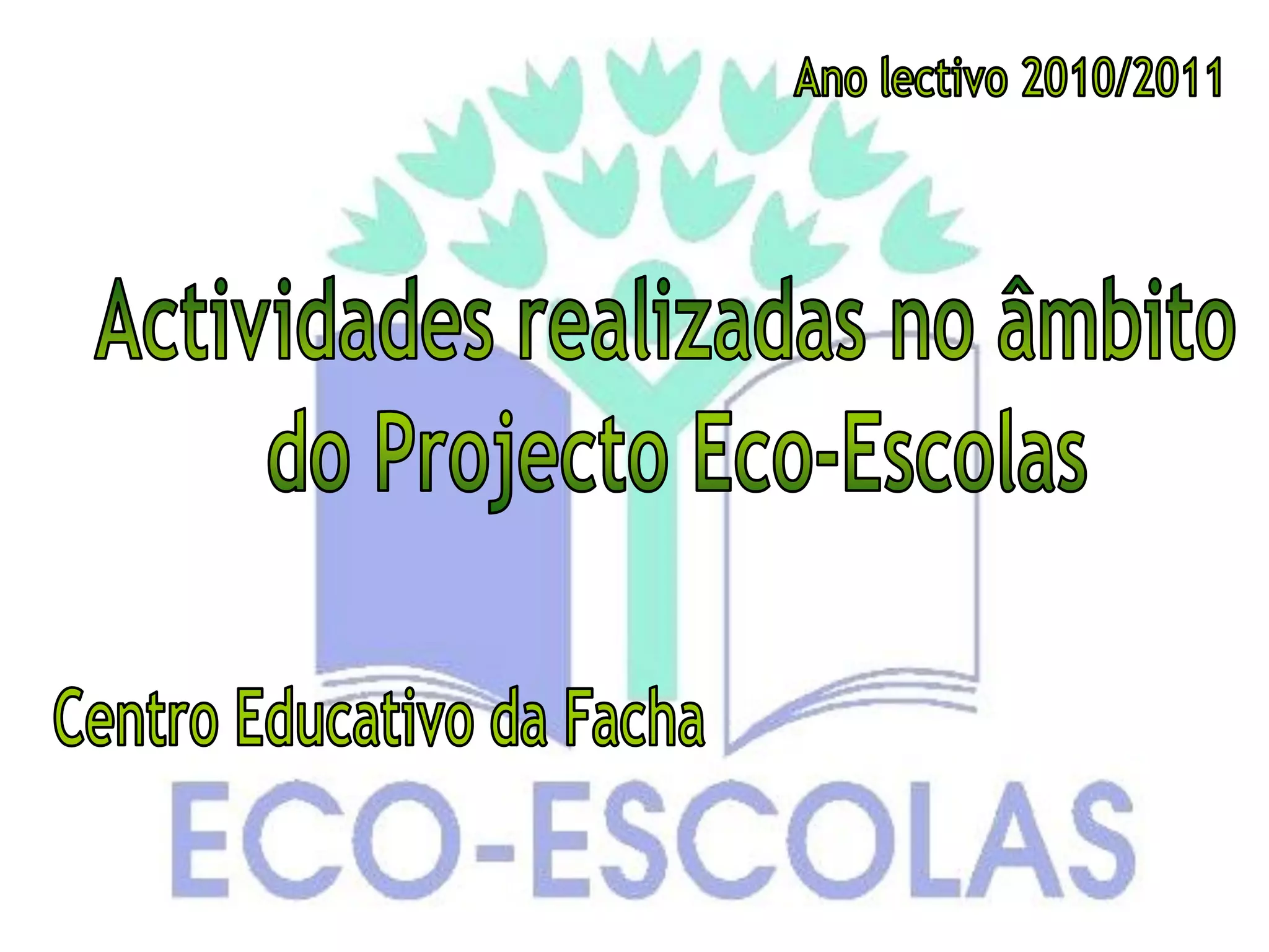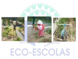 O documento descreve as atividades realizadas no âmbito do Plano de Ação da Eco-Escola, incluindo visitas educativas, projetos práticos sobre água, resíduos, agricultura biológica e biodiversidade, e palestras sobre esses temas.