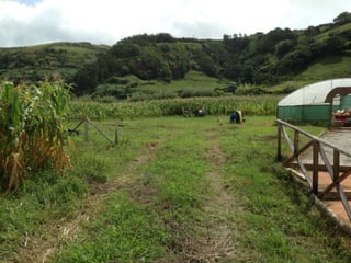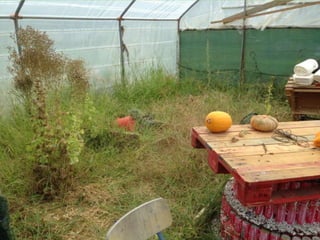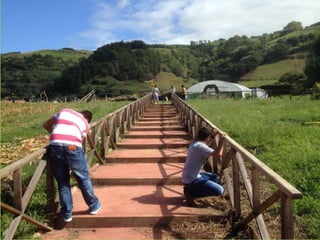 O documento descreve as atividades realizadas na Quinta das Faias em 2015-2016, incluindo a limpeza e organização da área, o cultivo de batatas-doces e hortaliças, a criação de espaços para sementeiras e a iniciação à permacultura.