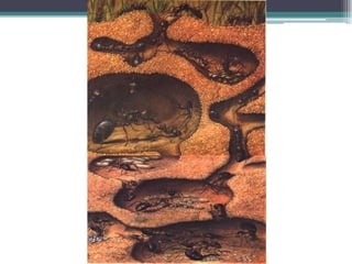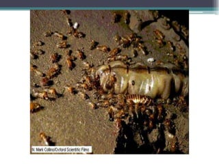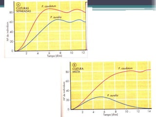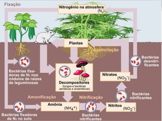 O documento discute conceitos fundamentais da ecologia, incluindo a interação entre seres vivos e seu ambiente, cadeias alimentares, fluxo de energia e matéria em ecossistemas, e pirâmides ecológicas. Explica que produtores fabricam energia orgânica por fotossíntese, heterótrofos consomem matéria orgânica, e decompositores reciclam nutrientes. A energia flui de produtores para diferentes níveis tróficos, diminuindo a cada transferência.