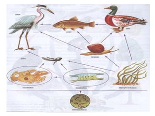 1) Cadeias alimentares e teias alimentares mostram as relações tróficas entre organismos de um ecossistema.