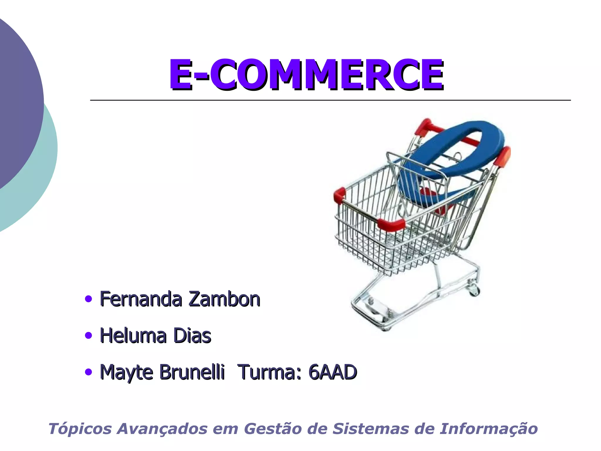 O documento discute o comércio eletrônico no Brasil. Ele descreve os tipos de e-commerce, características, vantagens e desvantagens do e-commerce, meios de pagamento, estatísticas e previsões para o mercado brasileiro de e-commerce em 2009, incluindo um crescimento esperado de 20-25% em relação a 2008.