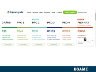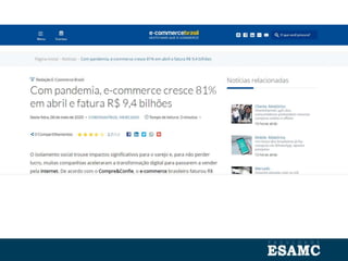 O documento discute estratégias para vendas online, incluindo tipos de vendas, como venda direta, loja virtual e marketplaces. Também aborda passos competitivos como ser encontrado online, atrair clientes com avaliações e redes sociais, além de analisar métricas como taxas de conversão e efetividade de promoções.