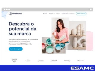 O documento discute estratégias para vendas online, incluindo tipos de vendas, como venda direta, loja virtual e marketplaces. Também aborda passos competitivos como ser encontrado online, atrair clientes com avaliações e redes sociais, além de analisar métricas como taxas de conversão e efetividade de promoções.