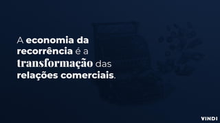 A economia da recorrência transforma a relação comercial, movendo o foco de produtos para experiências e relacionamentos com os clientes. O Brasil, com 70% do PIB no setor de serviços, vê um aumento em modelos de negócios recorrentes, enquanto as empresas que não se adaptam correm risco de desaparecimento. A Vindi oferece soluções para facilitar esse modelo, ajudando empresas a oferecer experiências memoráveis e personalizadas aos seus clientes.