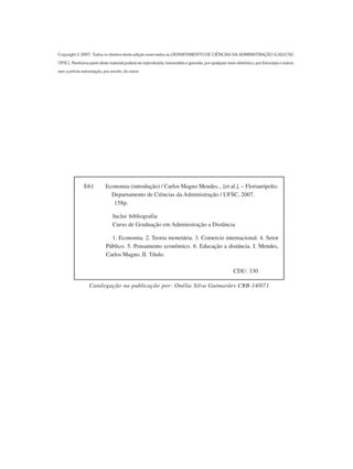 A Unidade 1 apresenta os conceitos fundamentais da Economia, discutindo o que é Economia e suas principais divisões. A disciplina busca entender como as pessoas gerenciam recursos escassos para satisfazer necessidades ilimitadas. A Economia estuda a produção, distribuição e consumo de bens e serviços em uma sociedade.