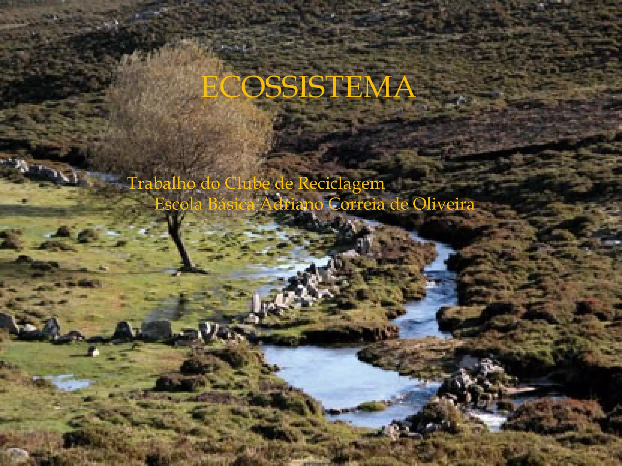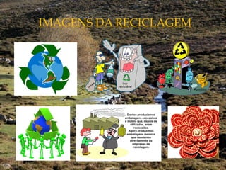 O documento discute os tópicos de ecossistema, ambiente e reciclagem. Aborda o que é um ecossistema, os componentes abióticos e bióticos do ambiente, e os diferentes tipos de reciclagem como papel, vidro e metal. Enfatiza a importância da preservação ambiental e da adoção dos três Rs: reduzir, reutilizar e reciclar.