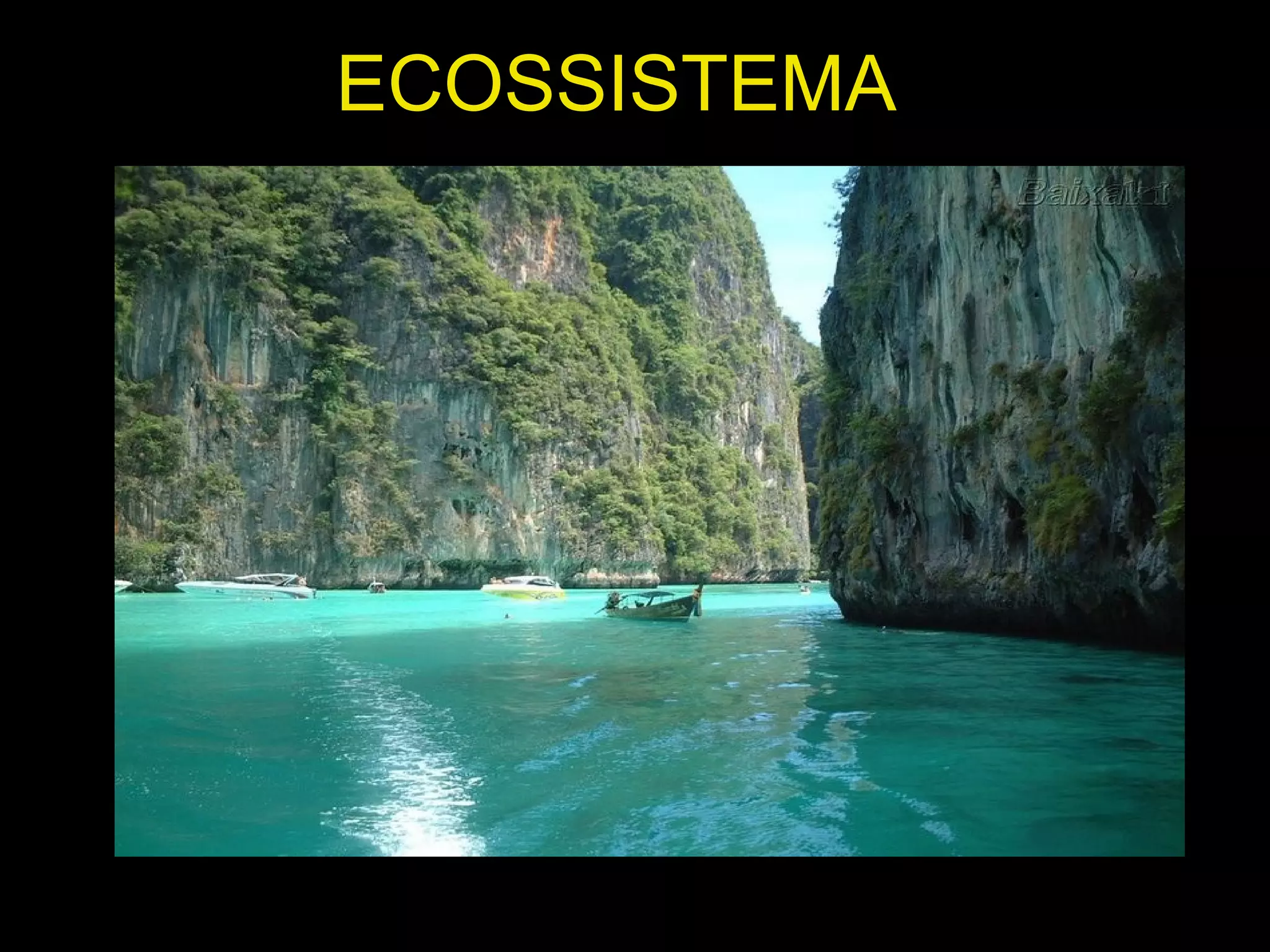 Um ecossistema é uma comunidade de elementos físicos e vivos em uma área, como uma floresta ou lago. Os elementos vivos dependem dos físicos e uns dos outros através de cadeias alimentares, com produtores, consumidores e decompositores transferindo energia. Perturbações podem ter consequências imprevisíveis para o equilíbrio do ecossistema.