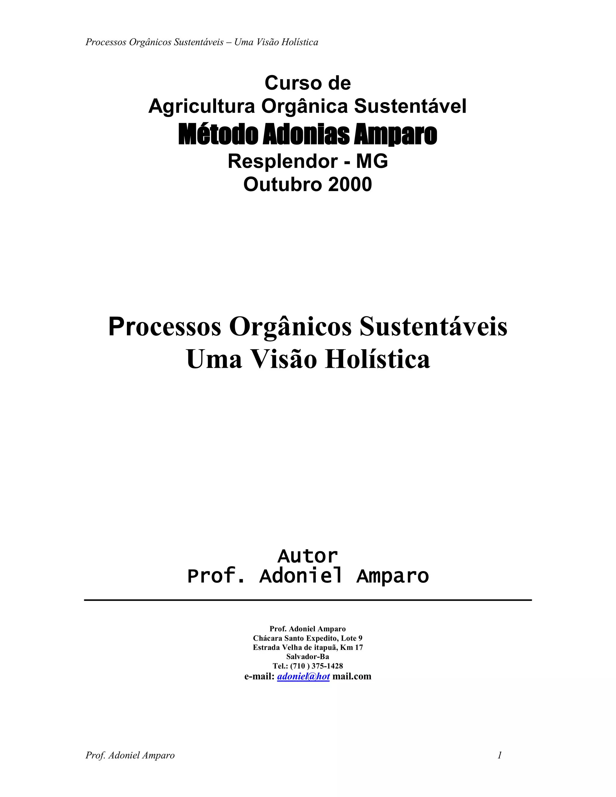 O documento discute processos orgânicos sustentáveis e agricultura de maneira holística. Aborda como os ecossistemas funcionam de forma interligada e como a agricultura pode imitar a natureza preservando equilíbrios e ciclos. Também apresenta breve histórico da agricultura e conceitos de ecologia, enfatizando a importância de se entender e respeitar a natureza.