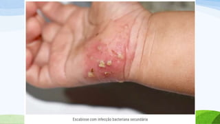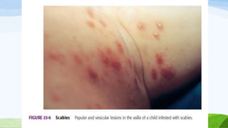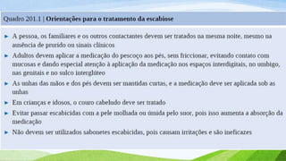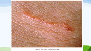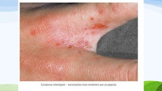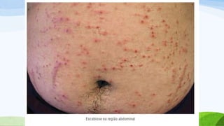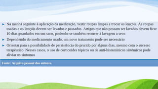 O documento aborda a prevalência e as consequências das ectoparasitoses, que afetam uma grande parte da população em comunidades carentes, destacando condições como escabiose e pediculose. Ele enfatiza a importância do diagnóstico e tratamento adequado, além de medidas de higiene para prevenir a disseminação das infecções. Também ressalta a negligência das políticas públicas e a necessidade de atenção especial para melhorar a qualidade de vida dos afetados.