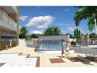 O documento descreve um prédio residencial em Malaga com 2 dormitórios e 1 suíte, com entrega prevista em 36 meses. O prédio oferece diversas comodidades como salão de festas, salão de jogos, academia, piscinas e playground. Informa também o contato do consultor Pavani no telefone 9304-1233.