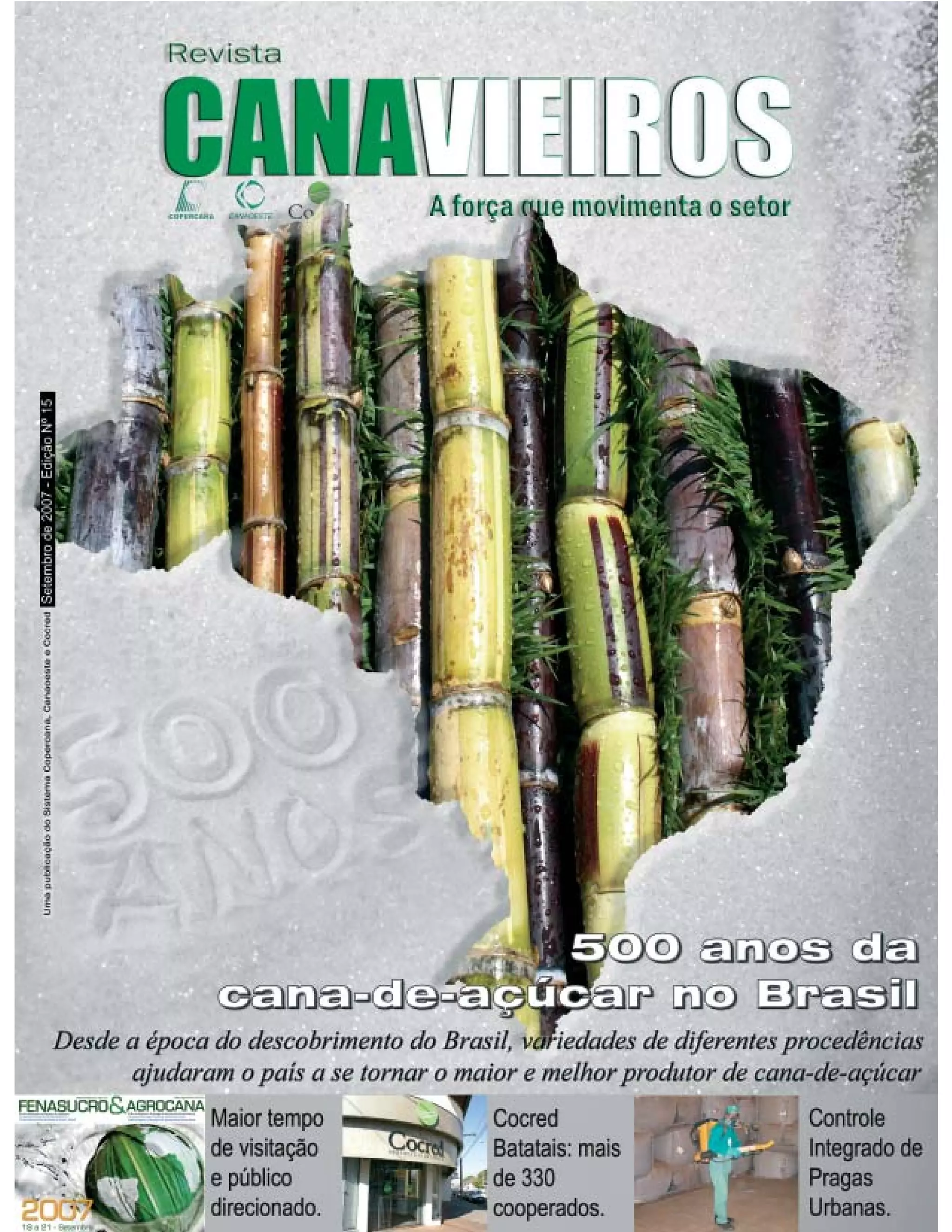 1) O documento é a edição de setembro de 2007 da Revista Canavieiros, que celebra os 500 anos da cana-de-açúcar no Brasil desde o descobrimento.