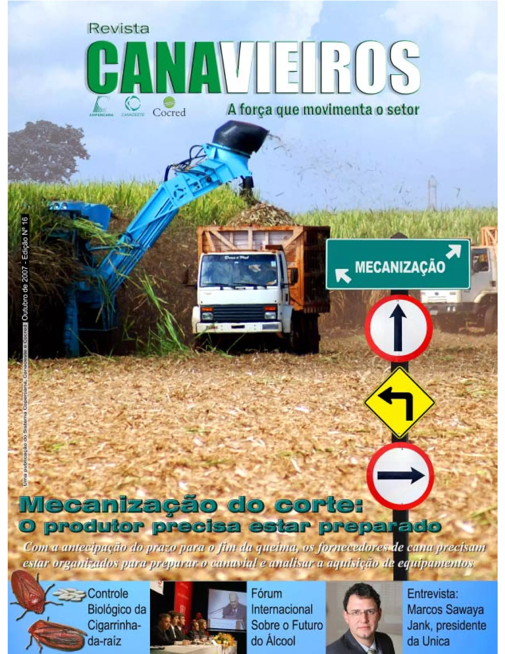 1) O artigo discute a mecanização do corte da cana-de-açúcar devido aos novos prazos estabelecidos pelo Protocolo Agroambiental para eliminação da queima. 2) Muitas usinas e produtores já aderiram ao protocolo, fazendo com que 70% da cana plantada na região de Ribeirão Preto fosse colhida mecanicamente nesta safra. 3) A revista traz reportagens e artigos para esclarecer dúvidas dos produtores sobre a colheita mecanizada e a necessidade de se