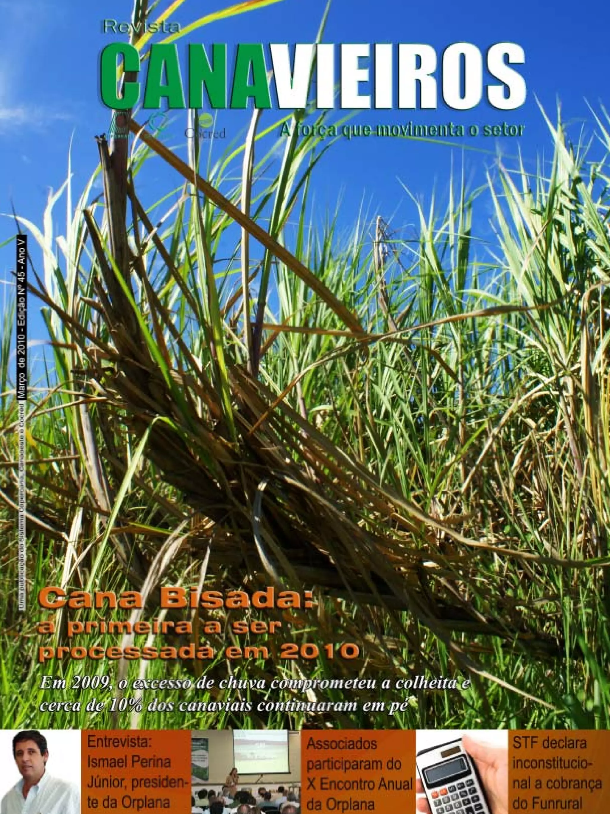 A revista Canavieiros de março de 2010 aborda: (1) A cana bisada, que é cana deixada da safra anterior para ser processada em 2010, gerando um excedente de matéria-prima; (2) Entrevista com o presidente da Orplana sobre as expectativas positivas para a safra 2010/2011 com melhores preços de cana, açúcar e etanol; (3) Artigo sobre o potencial produtivo e contribuição financeira de cultivares de cana-de-açúcar.