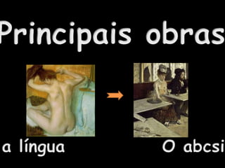 Edgar Degas foi um importante artista francês do século XIX conhecido por suas pinturas de bailarinas, cenas do cotidiano e retratos individuais, geralmente marcados pela suavidade das cores. Ele se interessou particularmente por representar bailarinas nos bastidores, captando a realidade escondida por trás dos espetáculos de balé. Degas também pintou frequentemente cenas de corridas de cavalo, focando nos animais e nos preparativos ao invés das corridas em si.