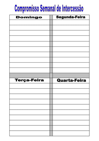 O documento apresenta dois ministérios religiosos: 1) O Ministério Famílias com Cristo, que tem como objetivo edificar as famílias da igreja, restaurando o sacerdócio familiar; 2) Uma agenda de oração diária com o objetivo de incentivar a oração constante e cultivar um relacionamento mais íntimo com Deus.