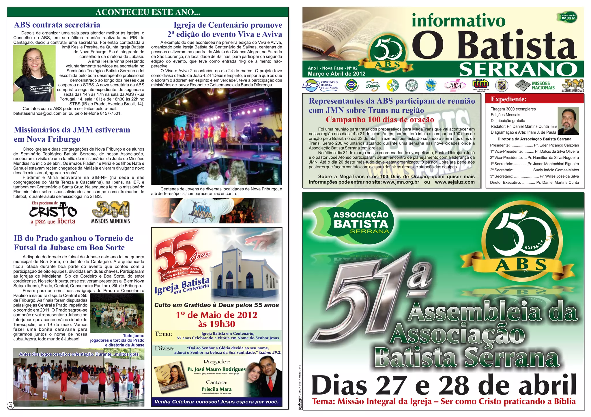 1) A ABS contratou uma nova secretária e realizou sua Aula Magna no Seminário Teológico Batista Serrano.