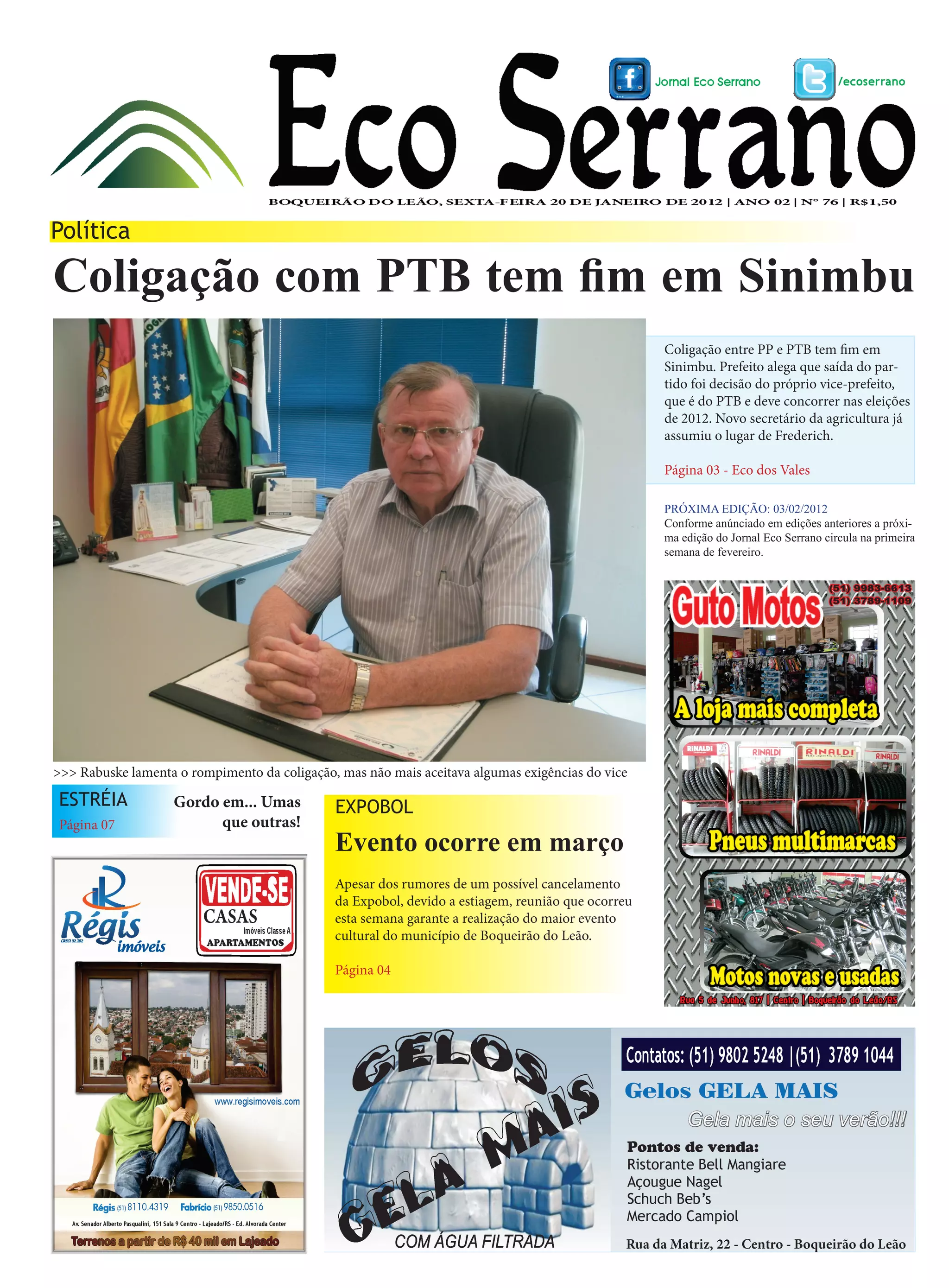 2 Eco Serrano, 20 de janeiro de 2012 | SEXTA-FEIRA Contatos: (51) 9720-4889