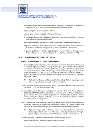 O edital n. 1/2013 torna pública a abertura das inscrições para o concurso da Polícia Civil de Mato Grosso do Sul, visando o provimento de diversos cargos mediante provas e títulos. Os candidatos devem atender a requisitos específicos, incluindo escolaridade, idade, e condições de saúde, além de haver reservas de vagas para pessoas com deficiência e grupos étnicos. As inscrições ocorrem de 3 a 16 de setembro de 2013, exclusivamente via internet, com taxa de R$ 143,36.