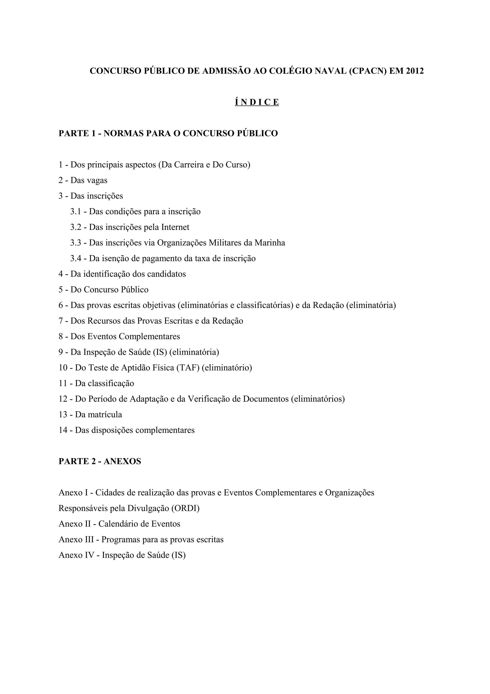 Este documento descreve o edital do concurso público de admissão ao Colégio Naval em 2012, com 235 vagas disponíveis. Detalha os requisitos para inscrição, como idade entre 15 e 18 anos, ter concluído o 9o ano do ensino fundamental e pagar taxa de inscrição. Também explica o processo de inscrição online ou nas Organizações Militares da Marinha, com prazos entre 13 de julho e 10 de agosto de 2012.