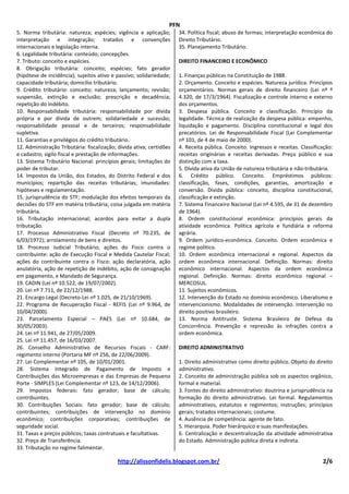 O documento apresenta os tópicos que serão abordados no concurso público para provimento de vagas no cargo de Procurador da Fazenda Nacional. Os assuntos incluem Direito Constitucional, Direito Tributário, Direito Financeiro e Econômico e Direito Administrativo, com ênfase em temas como sistema tributário, orçamento público, administração financeira e fiscalização administrativa.