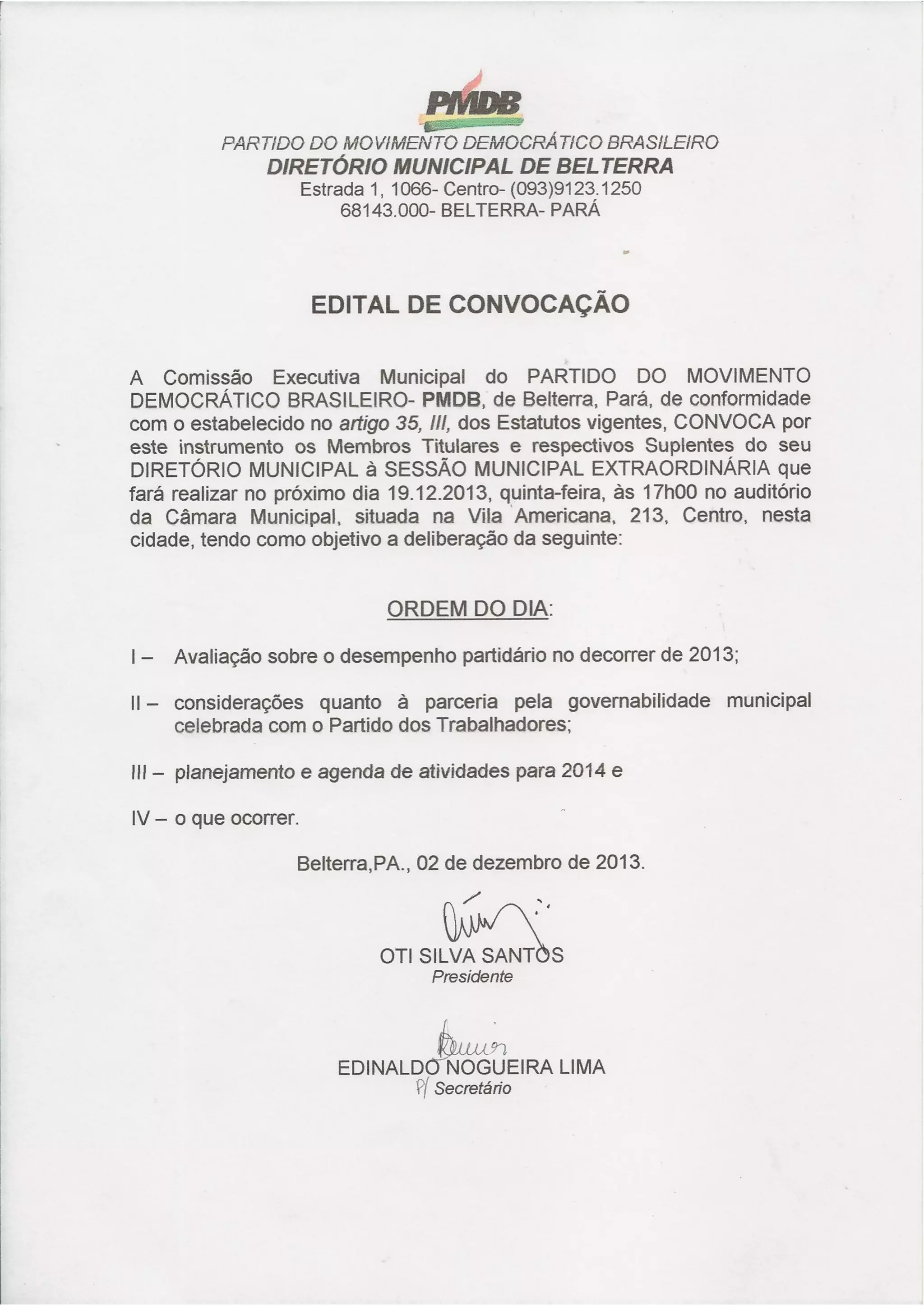 Edital do PMDB de Belterra