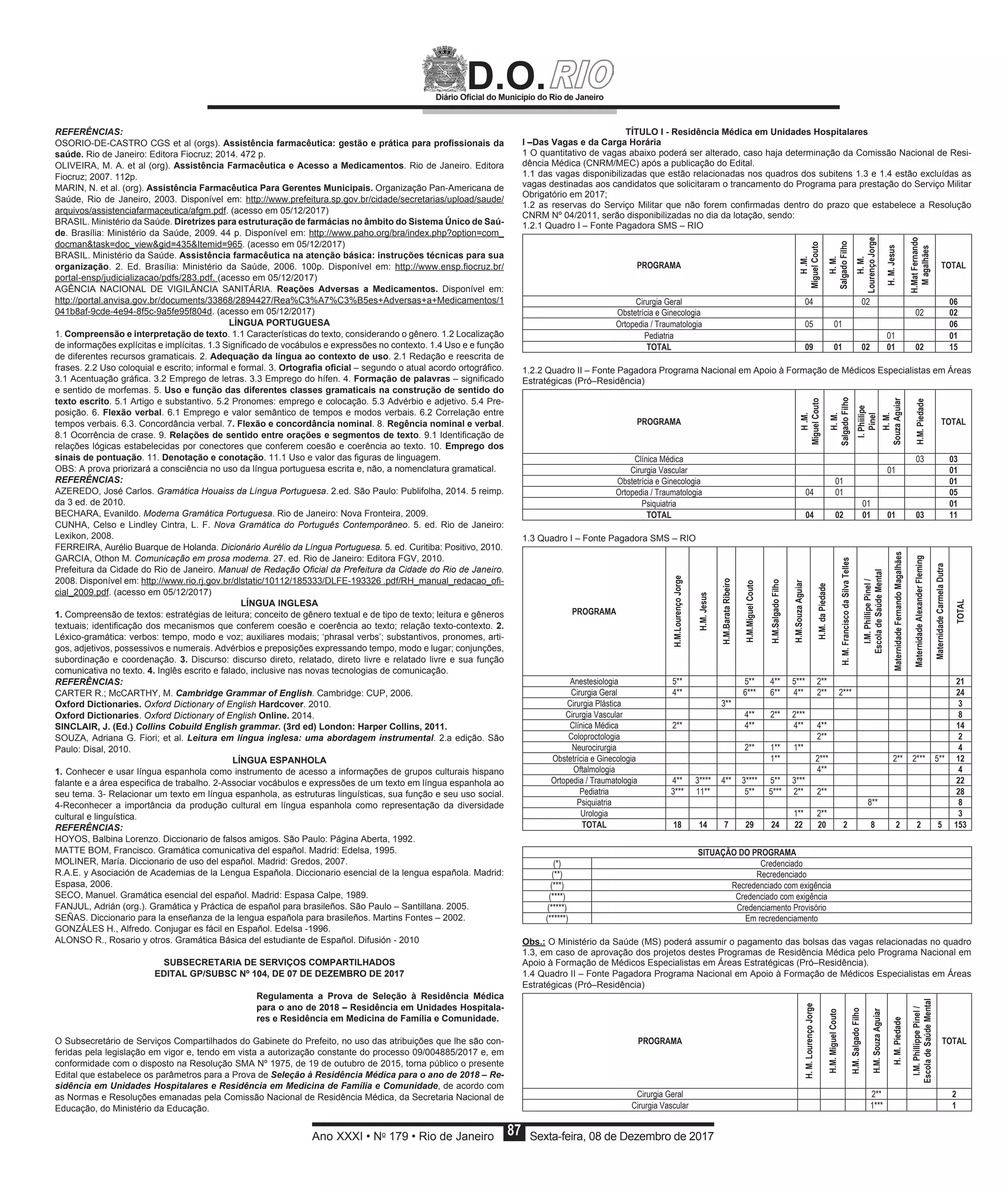 1. O documento regulamenta a Prova de Seleção à Residência Médica para o ano de 2018 no município do Rio de Janeiro, estabelecendo as normas, vagas e programas oferecidos.