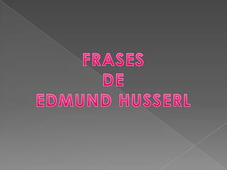 Edmund Husserl (1859-1938) foi um filósofo alemão considerado o fundador da fenomenologia. Estudou matemática e iniciou a carreira docente em 1883, ensinando filosofia. Criou a fenomenologia, que propunha estudar sistematicamente a consciência e objetos mentais. Foi excluído da universidade com a chegada de Hitler em 1933. Morreu em 1938 desejando morrer como um filósofo.