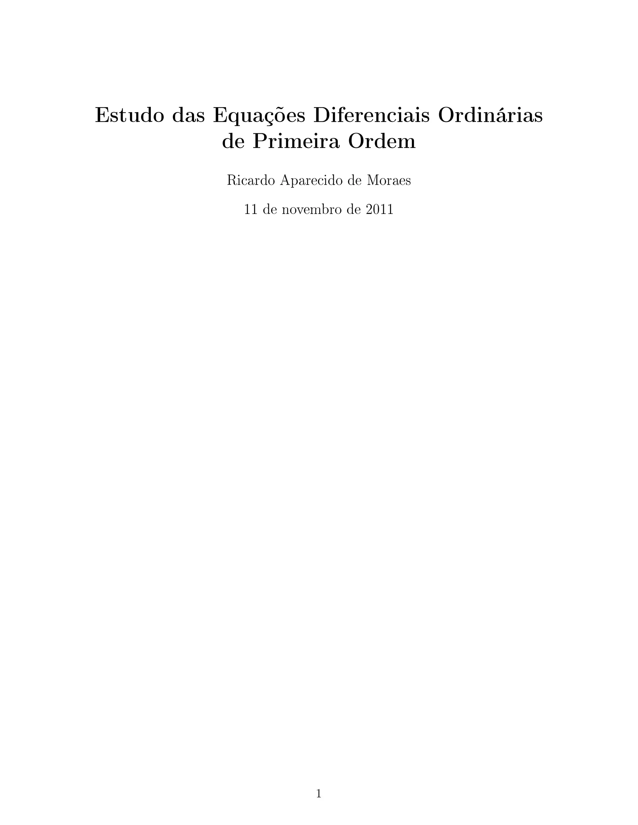 Este documento apresenta os principais métodos para resolver equações diferenciais ordinárias de primeira ordem, incluindo: (1) o método de separação de variáveis, (2) o método de substituição algébrica para equações homogêneas, e (3) o método para equações exatas. Além disso, discute aplicações destas equações diferenciais em problemas como o resfriamento/aquecimento de Newton, dinâmica populacional e crescimento de peixes.