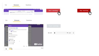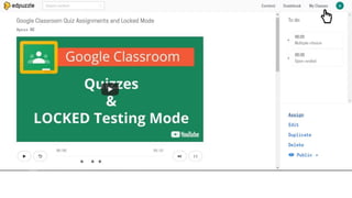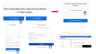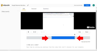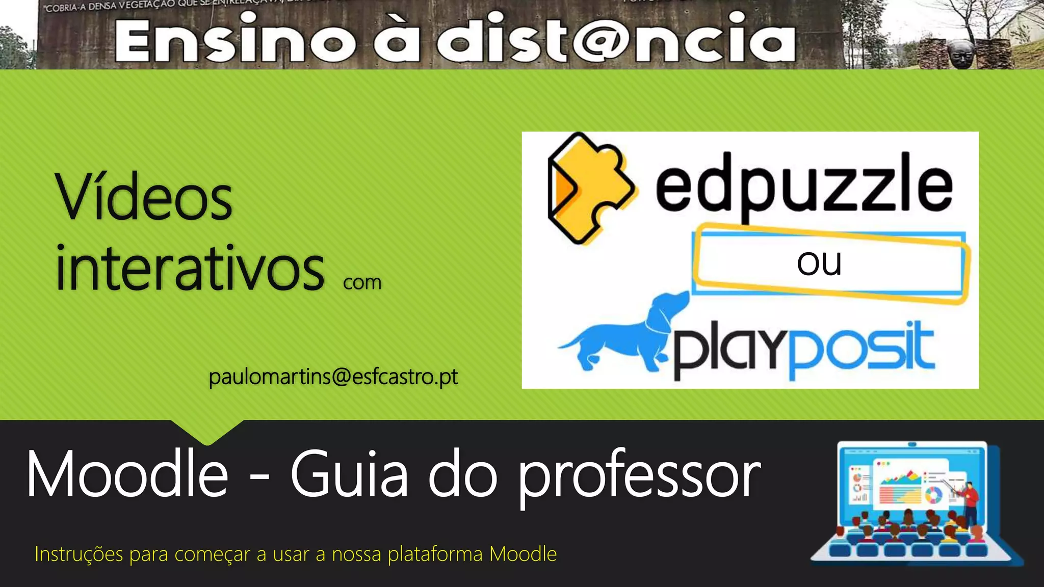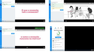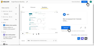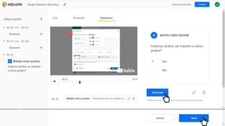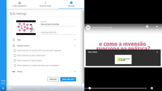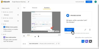 O documento fornece instruções sobre como usar a plataforma Moodle para professores, incluindo como carregar vídeos do YouTube e usar vídeos interativos em sala de aula para que os alunos possam responder em seus dispositivos. Também discute as opções de avaliação do EdPuzzle e PlayPosit e as principais diferenças entre eles.