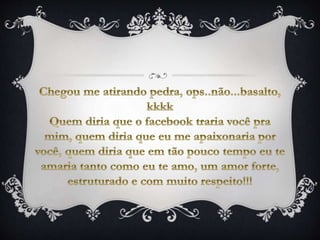 2) Ela canta que ele iluminou sua vida e que nasceu para ser sua parceira e morrer de prazer com ele.