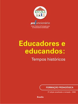 Este documento discute a importância de estudar a história da educação para entender o papel da escola pública e dos funcionários na formação dos estudantes. A educação ocorre de diversas formas e a escola deve proporcionar aprendizagens compartilhadas e colaborativas. Os funcionários podem contribuir na formação cívica e social dos alunos por meio de atividades nos diversos espaços escolares.
