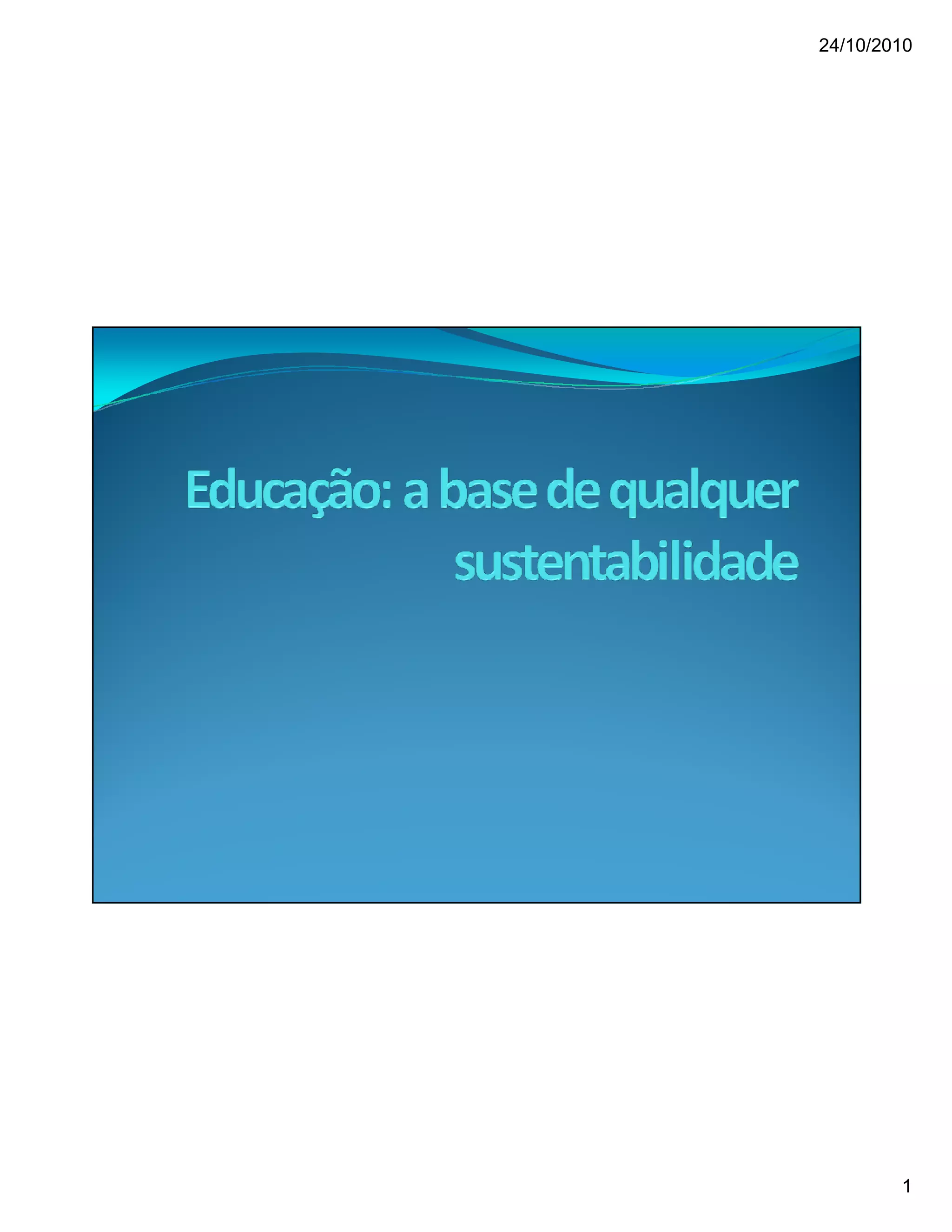 O documento discute um projeto para promover a sustentabilidade na Universidade Federal de Pernambuco através da educação sobre o uso consciente da água. O projeto propõe a instalação de torneiras econômicas, exposições sobre sustentabilidade e um programa contínuo de conscientização para alunos e funcionários.