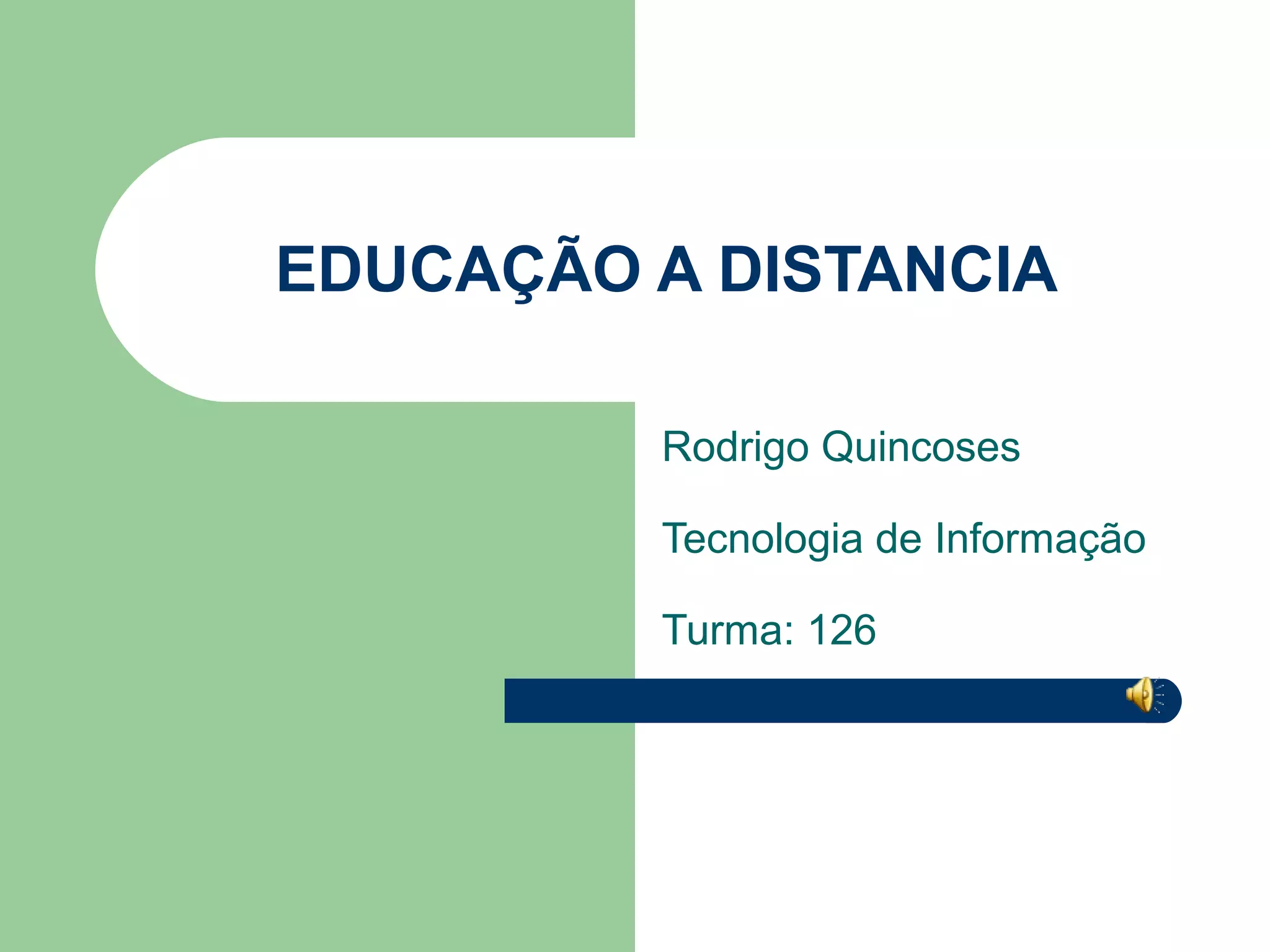 O documento discute conceitos básicos sobre educação a distância (EAD), incluindo uma breve história do uso de tecnologias na EAD no Brasil e no mundo, características de alunos e professores em EAD, as diferenças entre EAD e educação presencial, e conceitos sobre e-learning.